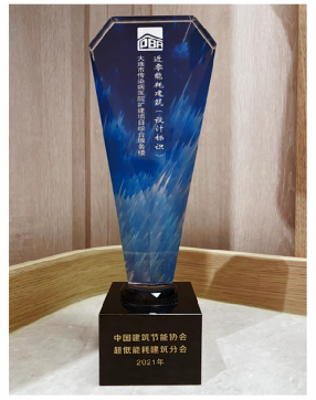 综合服务楼是辽宁省及大连市首座全面按照中国近零能耗建筑技术标准、德国被动房(PHI)认证标准以及绿色建筑评价标进行设计与建设的绿色低碳节能建筑。2021年12月该楼获得了由中国建筑节能协会颁发的近零能耗建筑设计认证标识,这也是辽宁省第一个获得此项官方认证的建筑项目,成为省内高品质近零能耗建筑发展的里程碑。同时,该项目被纳入《中国近零能耗建筑百佳实践案例集》中,作为最佳工程案例在不同平台得到了大力的宣传和推广。