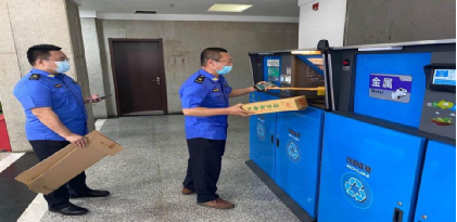 配齐、配足分类设施。在公共区域配置有智能投放设备和环保屋;每个办公室均配备了环保袋和其他垃圾桶,用于可回收物和其他垃圾的分类投放;食堂杜绝使用一次性餐具,剩菜剩饭等餐厨垃圾与纸巾、食品包装等其他垃圾严格执行分类投放。