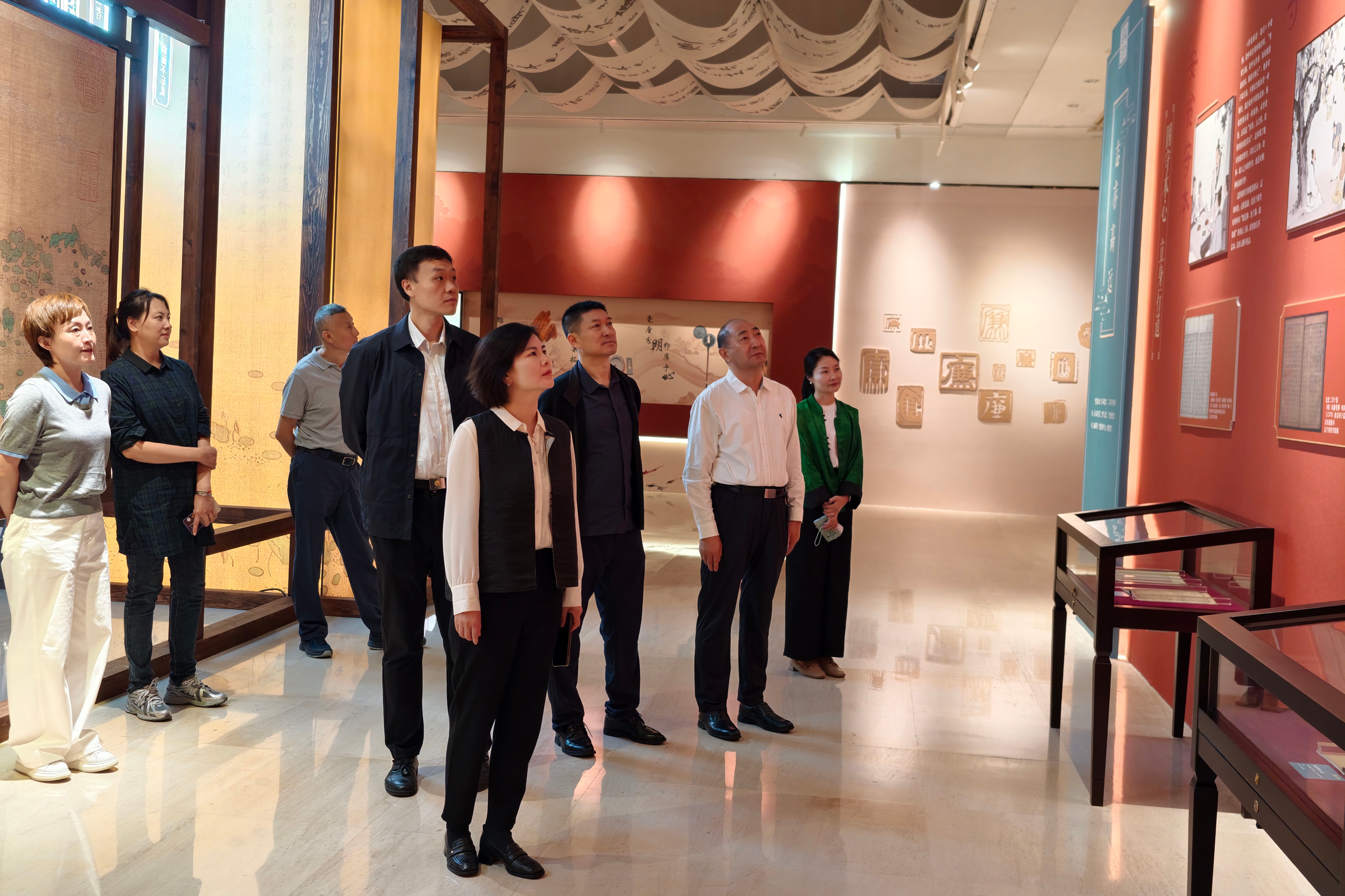 步入展厅,大家依次参观了“志存高远”“修身齐家”“崇廉拒腐”“防微杜渐”“求真笃行”5个主题单元,认真观看了宋、元、明、清等时期的珍贵典籍,深入挖掘了《史记》《礼记》《世说新语》等经典著作中蕴含的廉洁思想。展览生动再现了张伯行、羊续、张九成等古代先贤廉洁奉公、勤政为民的故事,将抽象的廉洁理念转化为可看、可感、可学的鲜活案例,让党员干部在直观体验中汲取精神养分,感悟“廉”之真谛。